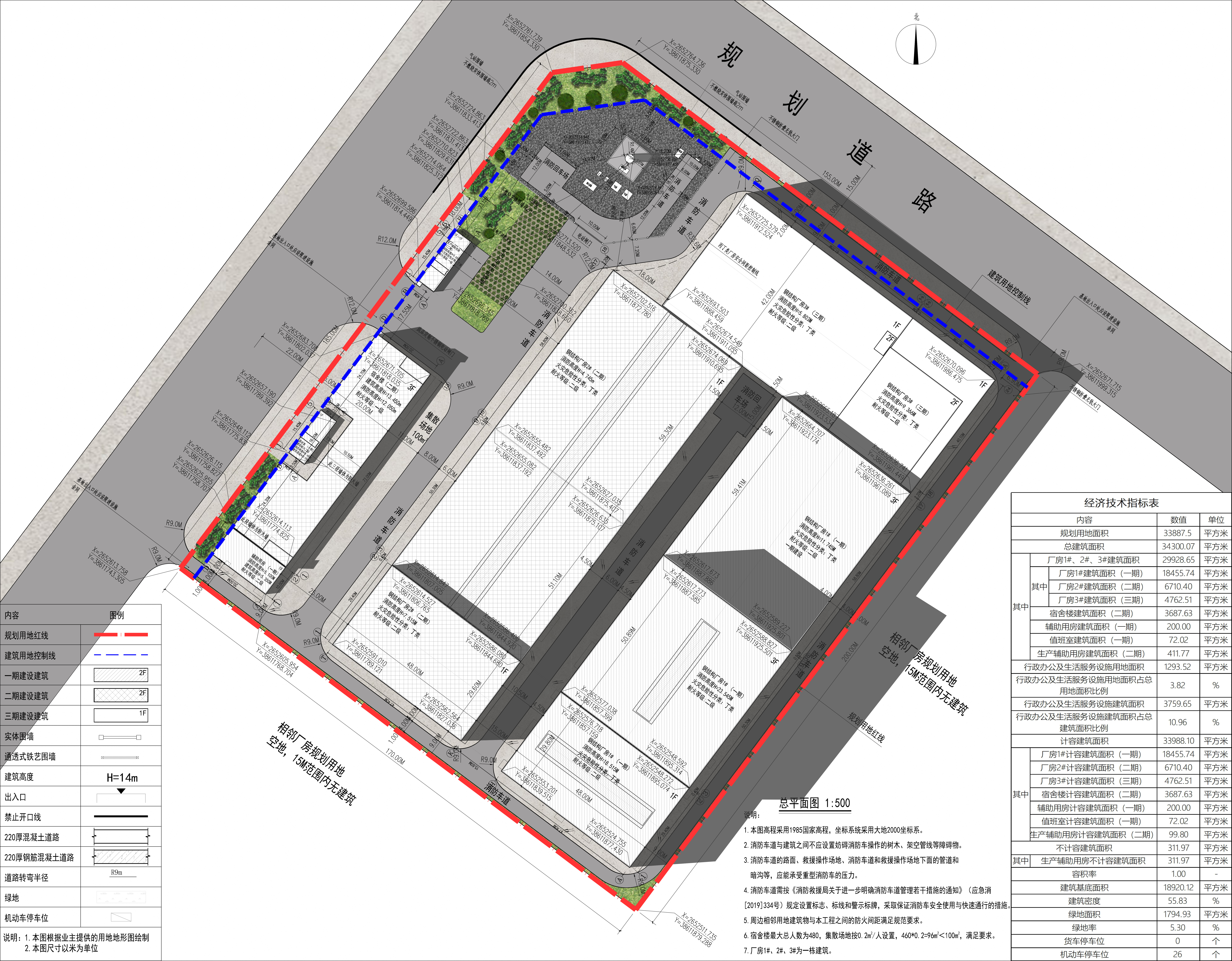 項目位于藍(lán)口鎮(zhèn)硅產(chǎn)業(yè)園內(nèi)(GC-03-02地塊),總用地面積33887.5平方米,用地性質(zhì)為工業(yè)用地,建設(shè)單位為特諾玻璃制品(廣東)有限公司。第二次調(diào)整方案于2025年第9次局聯(lián)審會議通過。建設(shè)單位向我局再次提交調(diào)整方案,主要調(diào)整內(nèi)容為:將規(guī)劃的廠房3#建筑高度由9.17米調(diào)整為9.366米及5.803米,調(diào)整后廠房3#的計容建筑面積由7812平方米下調(diào)至4762.51平方米。調(diào)整后方案主要經(jīng)濟技術(shù)指標(biāo)為:總建筑面積共34300.07平方米(其中計容建筑面積為33988.1平方米、不計容建筑面積為311.97平方米),容積率為1.0,建筑密度為55.83%,綠地率為5.3%。