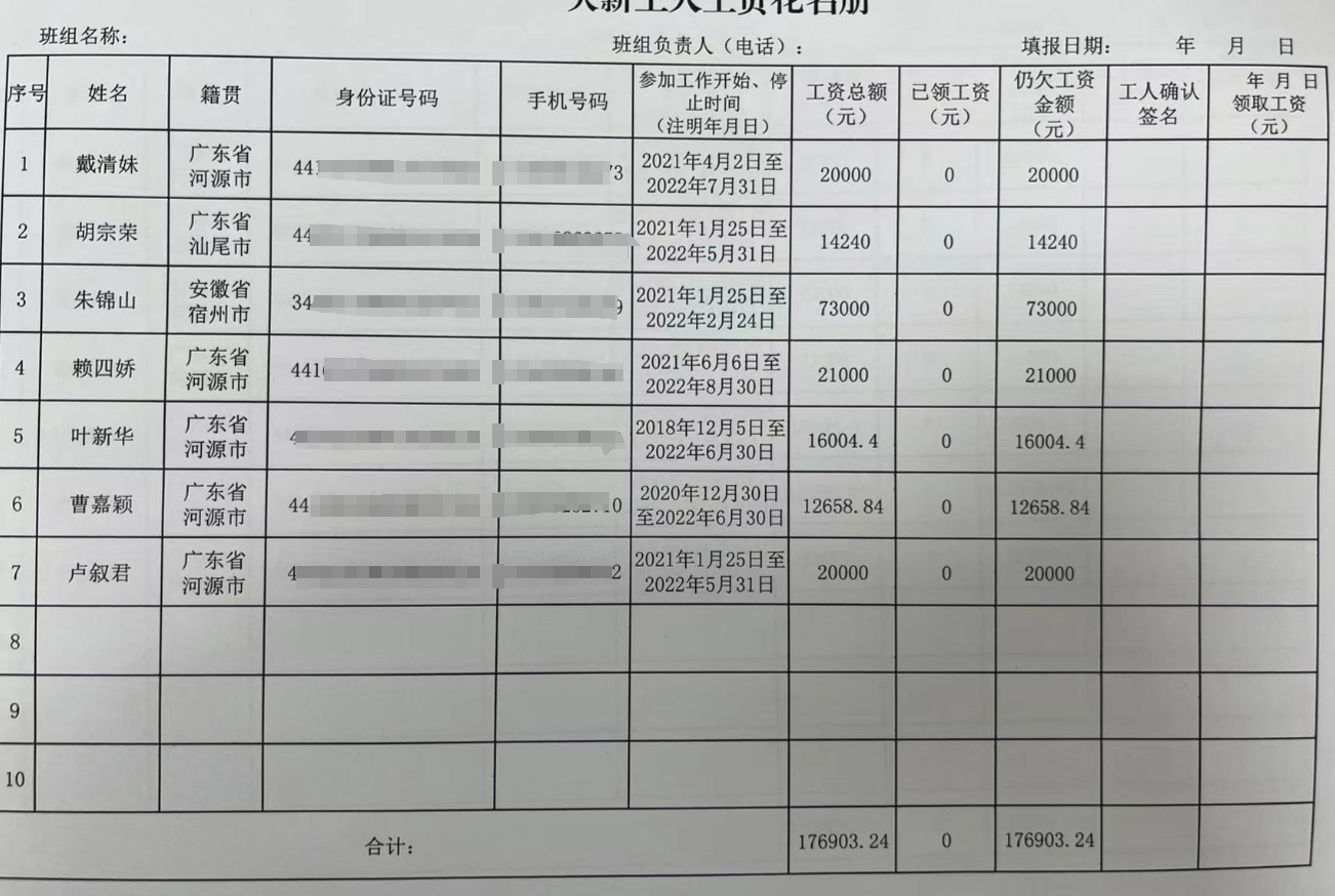決定由你單位足額支付戴清妹等7名勞動者自2021年12月至2022年8月期間勞動報酬共計176903.24元(詳見附件)。