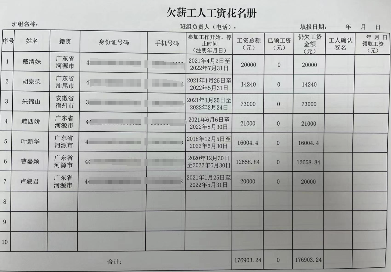 決定由你單位足額支付戴清妹等7名勞動者自2021年12月至2022年8月期間勞動報酬共計176903.24元(詳見附件)。